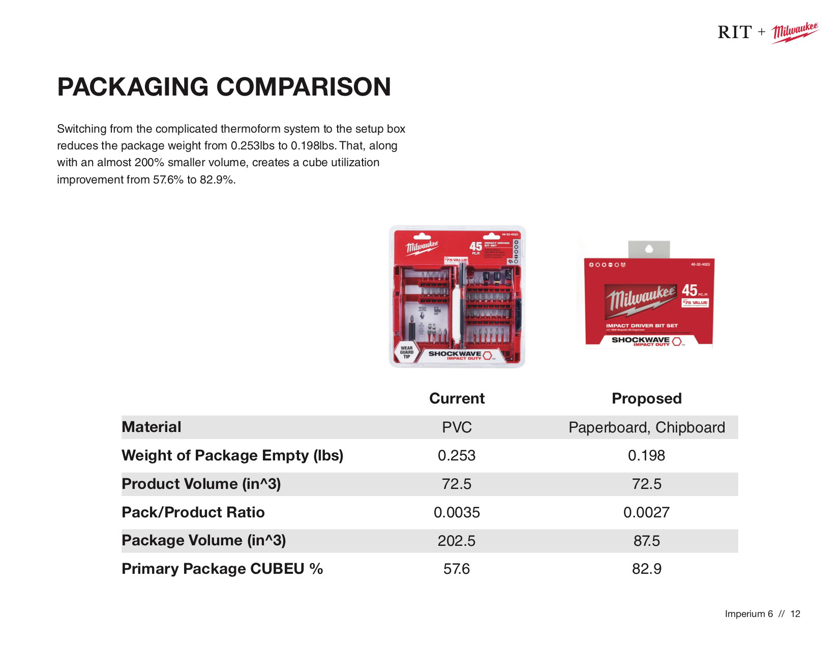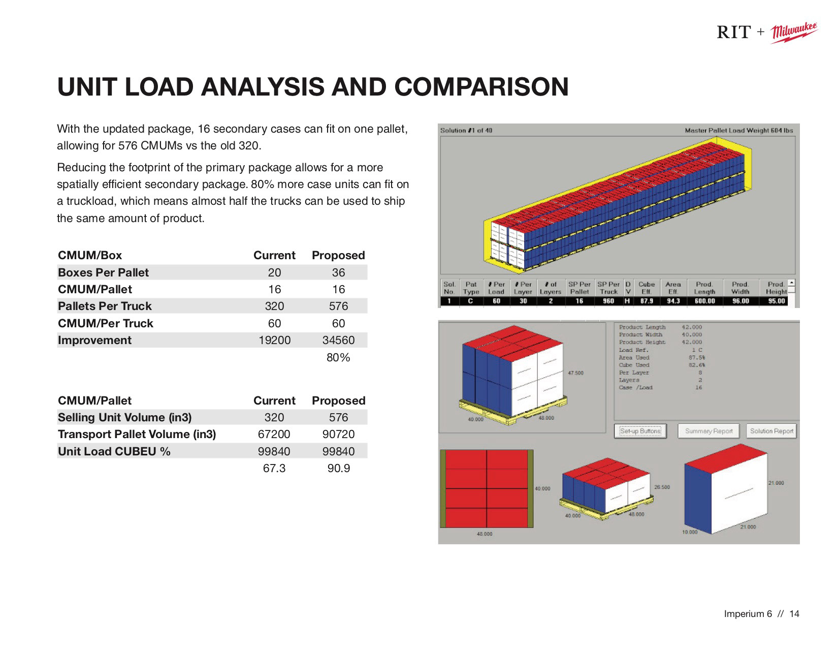 The entire process was recorded in a group bundle book including the design rationals and the impact of the new packaging on the environment, as well as showing the unit load analysis and comparisons to the original packaging.